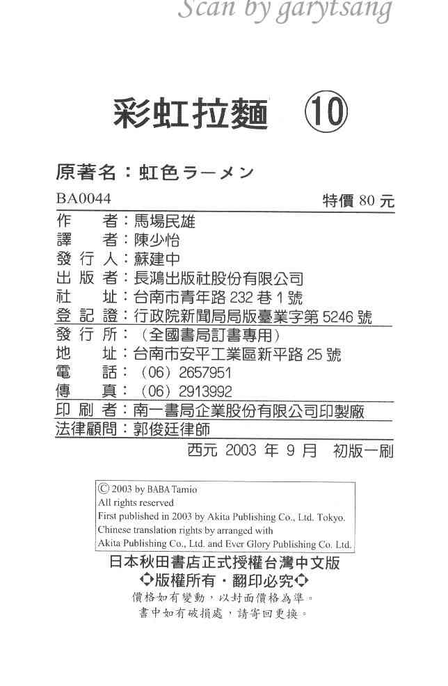 《彩虹拉面》目录