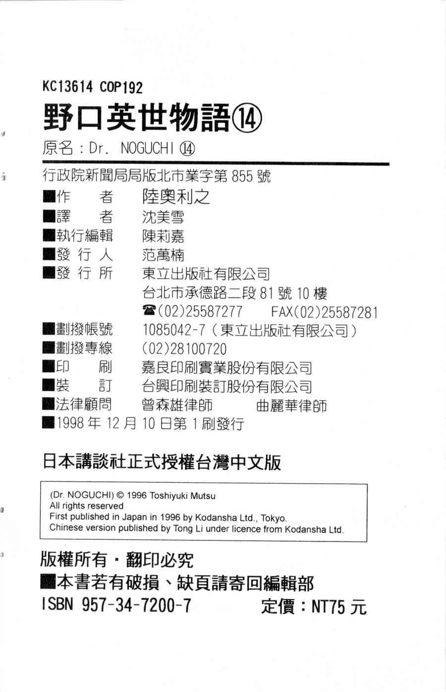 《野口英世物语》目录