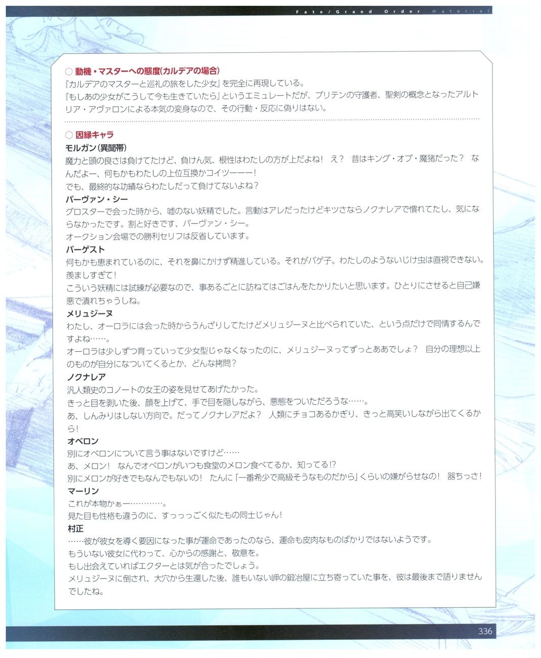 《命运/冠位指定官方设定集》目录