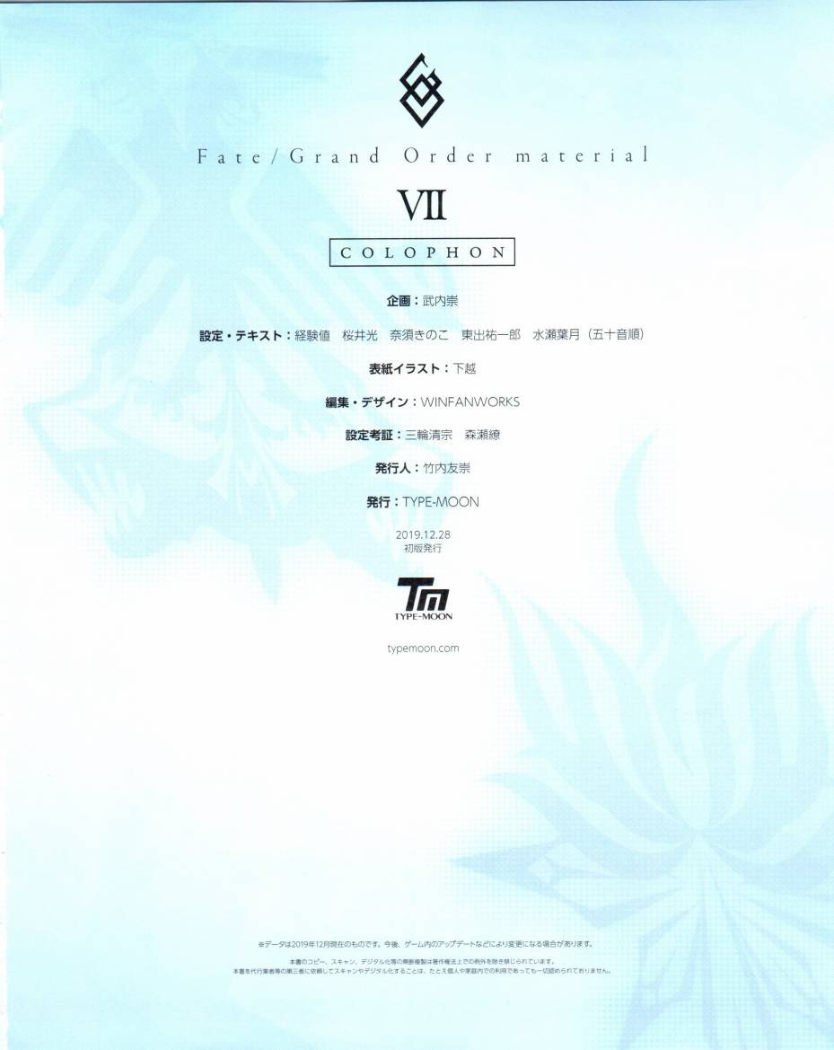 《命运/冠位指定官方设定集》目录