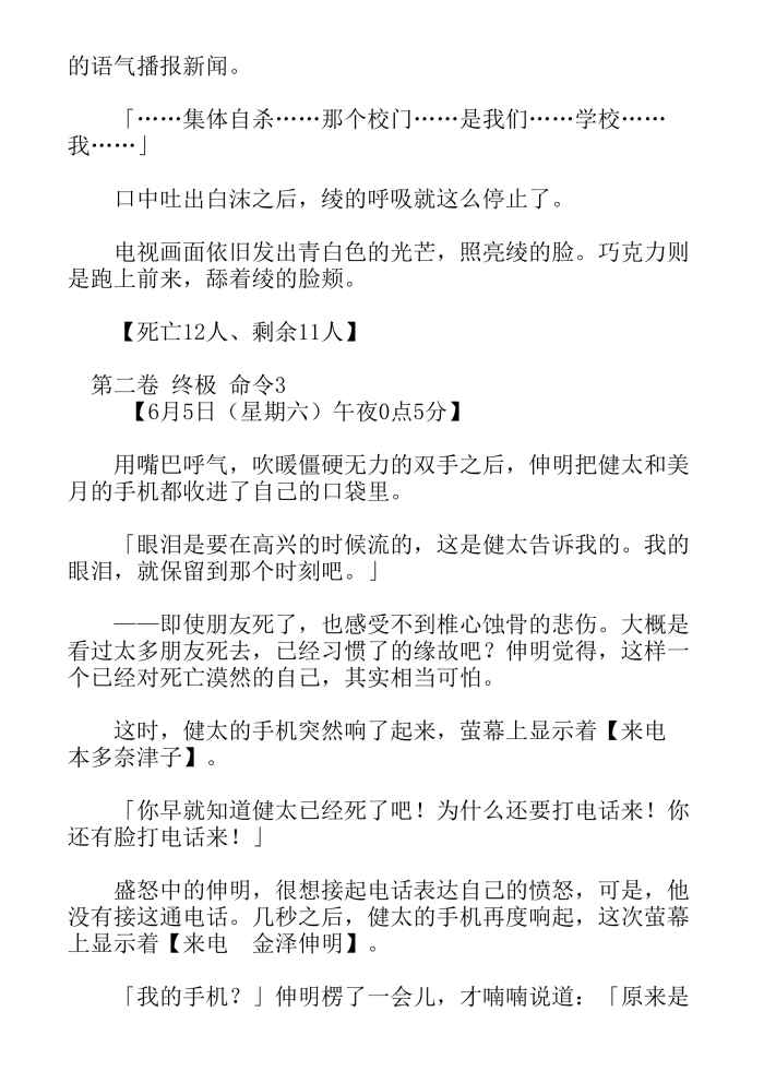 《国王游戏-轻小说》目录